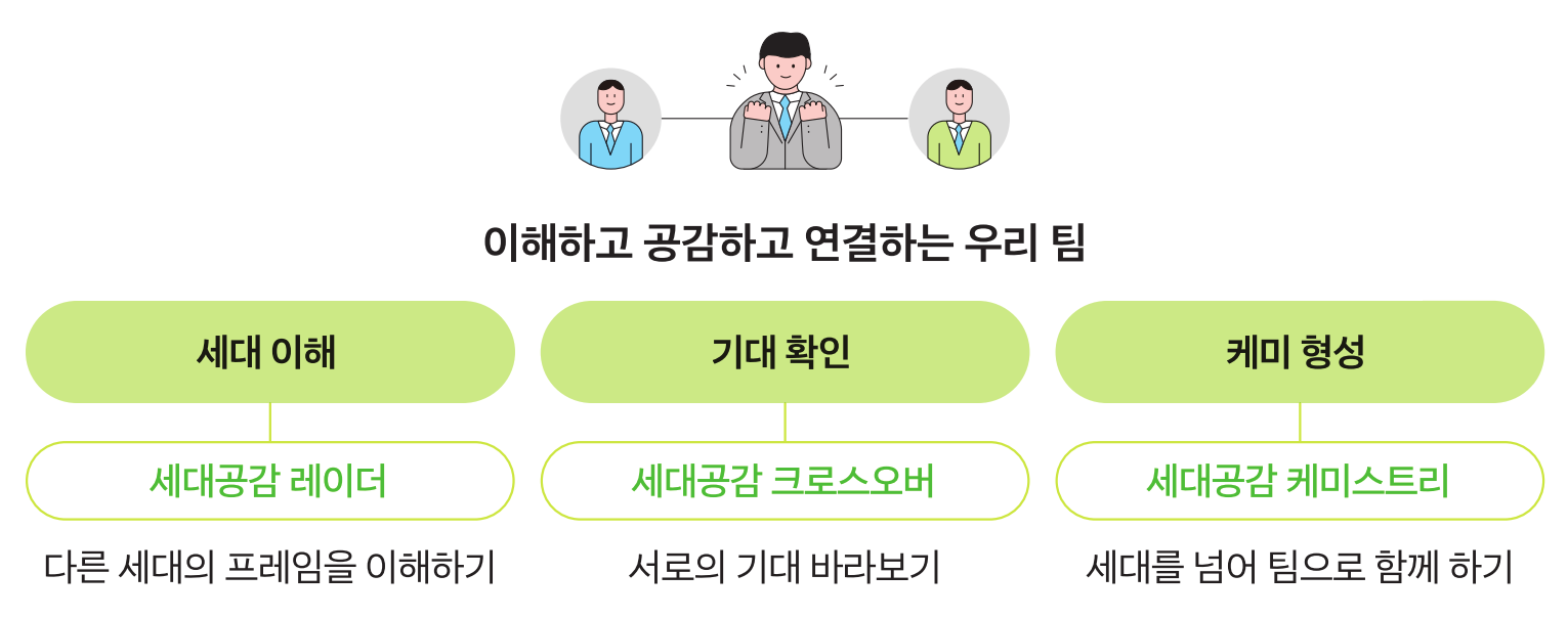 업무적 소통을 넘어 계층별 정서적 소통의 중요함을 이해하고, 세대 간 상호 요구되는 기대 역할 행동을 공유