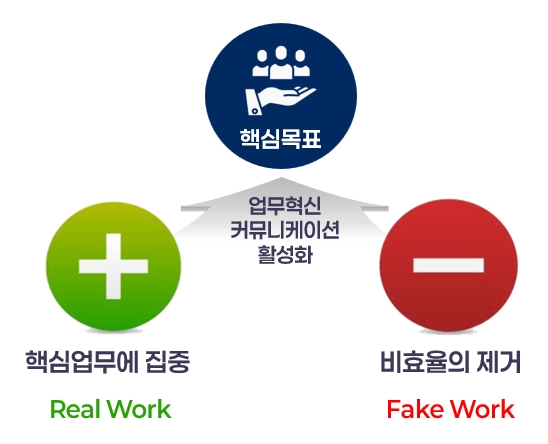 비효율 업무(Fake Work)를 타파하고, 핵심 업무(Real Work)에 집중하는 문화를 구축하기 위한 업무 혁신 커뮤니케이션 활성화