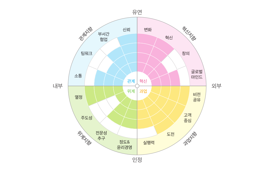 | 진단 목적 | ㆍ구성원들이 생각하는 건강한 조직문화에 대한 방향성 탐색 및 변화 필요성에 대한 공감 ㆍ조직문화 개발을 위한 우선 개입(Training/Non-Training) 영역 설정 ㆍOD 카페테리아 연계성 검토 |