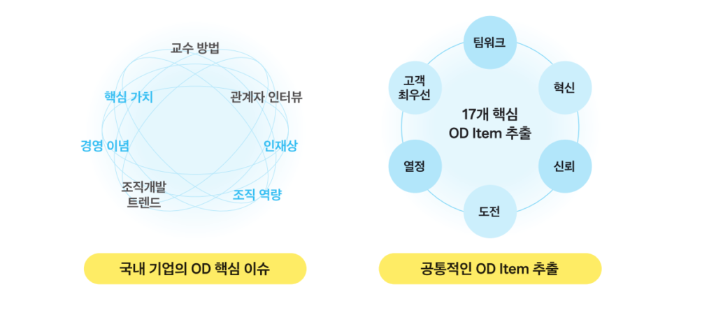 주요 대기업의 OD 핵심 이슈를 기반으로 개발되었으며, 지속적인 업데이트를 통해 최신 조직개발 트렌드를 반영하고 있습니다.
